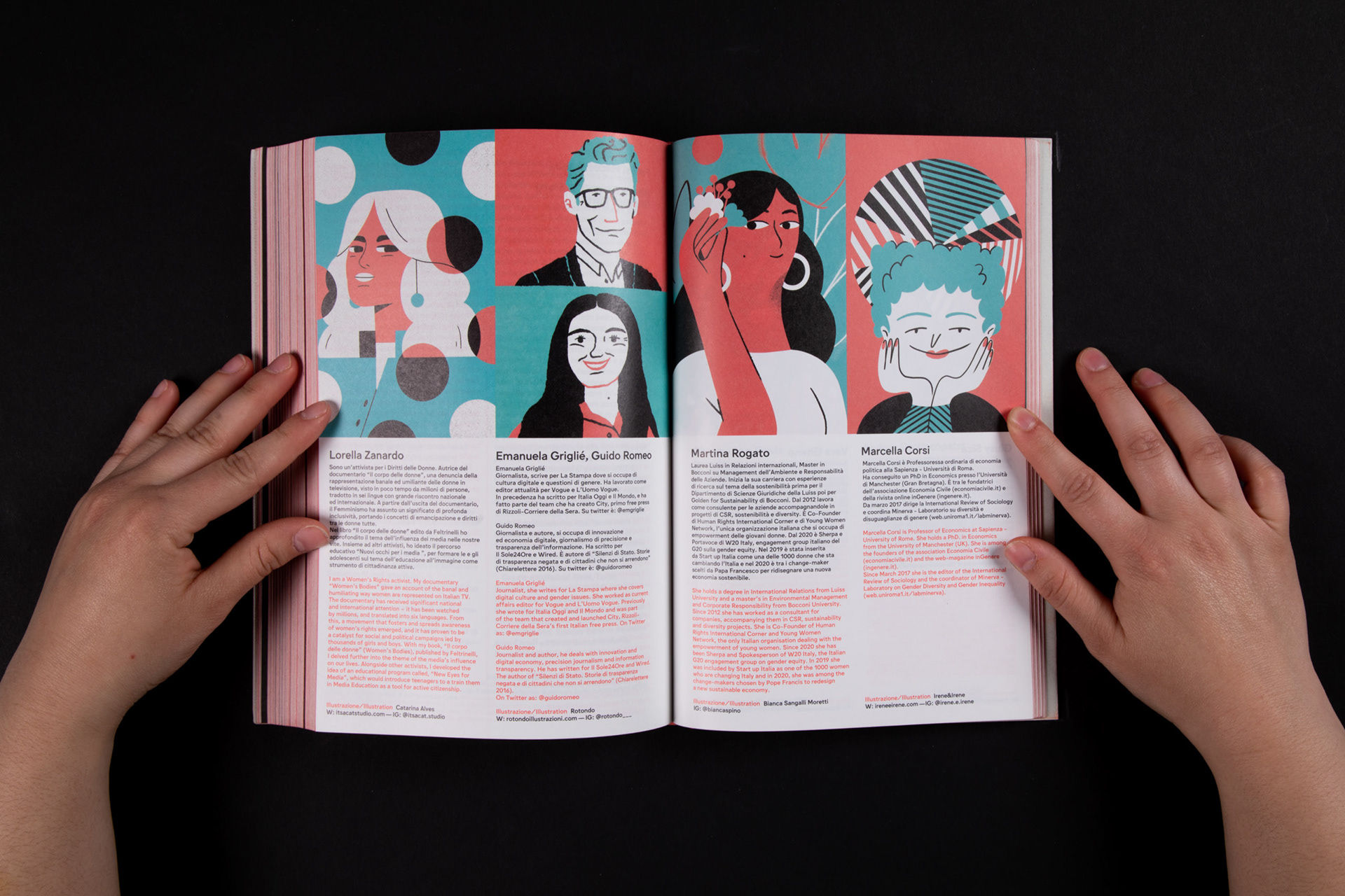 AWDA Uncover is the third volume chronicling the AWDA, Award Women in Design Award. Collected in this volume are 12 illustrated interviews with activists, researchers, and public figures. I had the pleasure of curating the art direction of the portraits and created the portrait of Martina Rogato, co-founder of Young Women Network and Human Rights International Corner, part of Women20 group of G20.